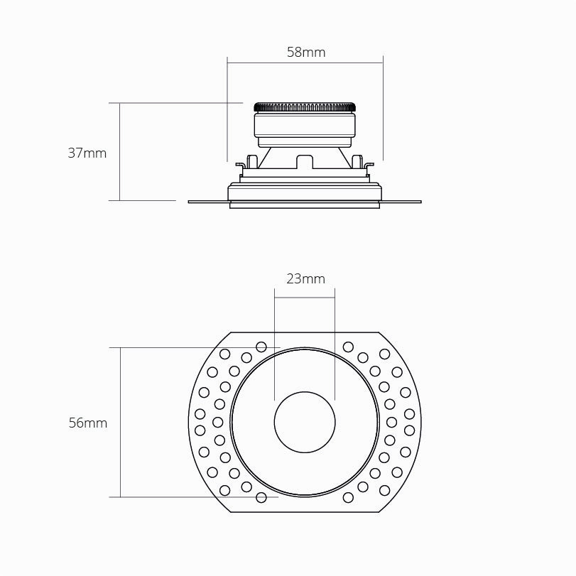Der Deckenstrahler Buxton kann bündig in die Decke eingegipst werden, da er keinen Rand hat, der von der Decke abstehen würde.