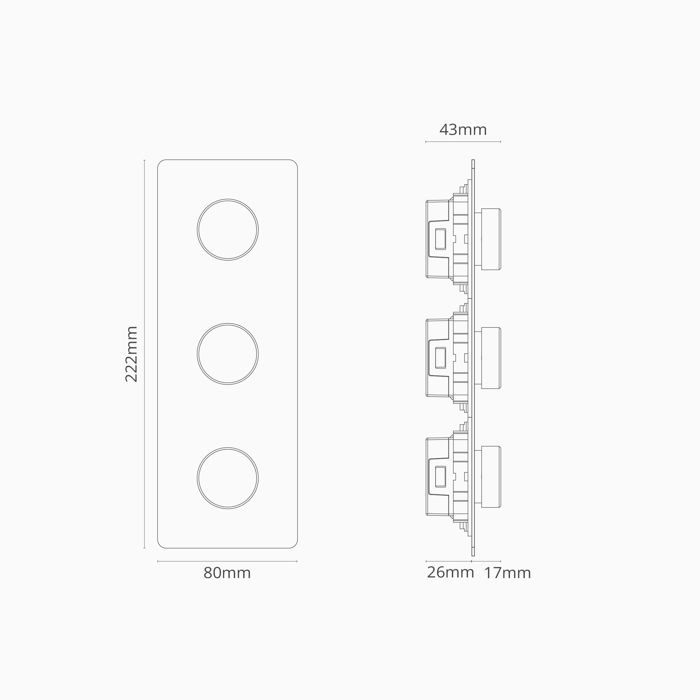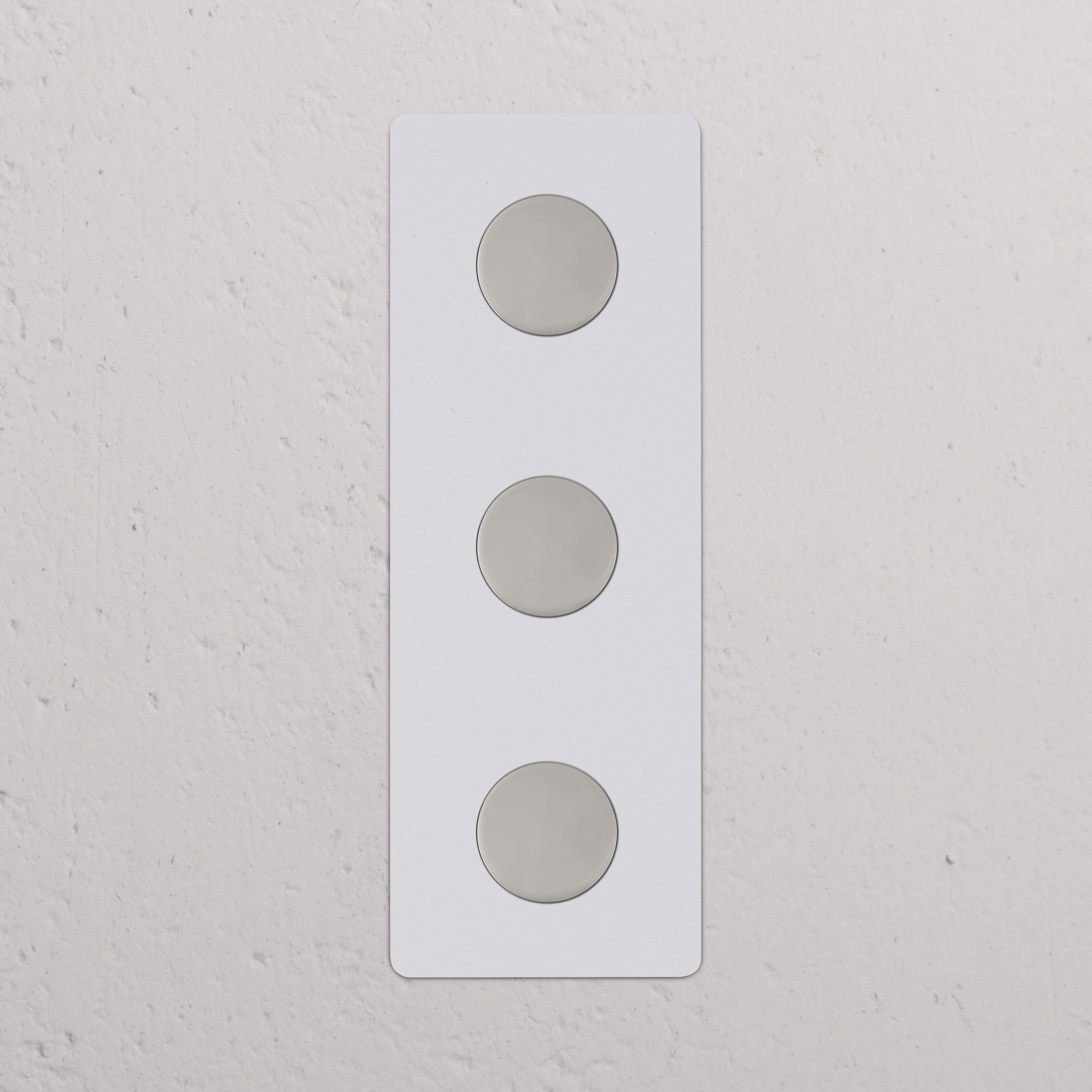Schlank und schnörkellos: Das ist unser Dimmer 3x in vertikalem Dreifachrahmen.