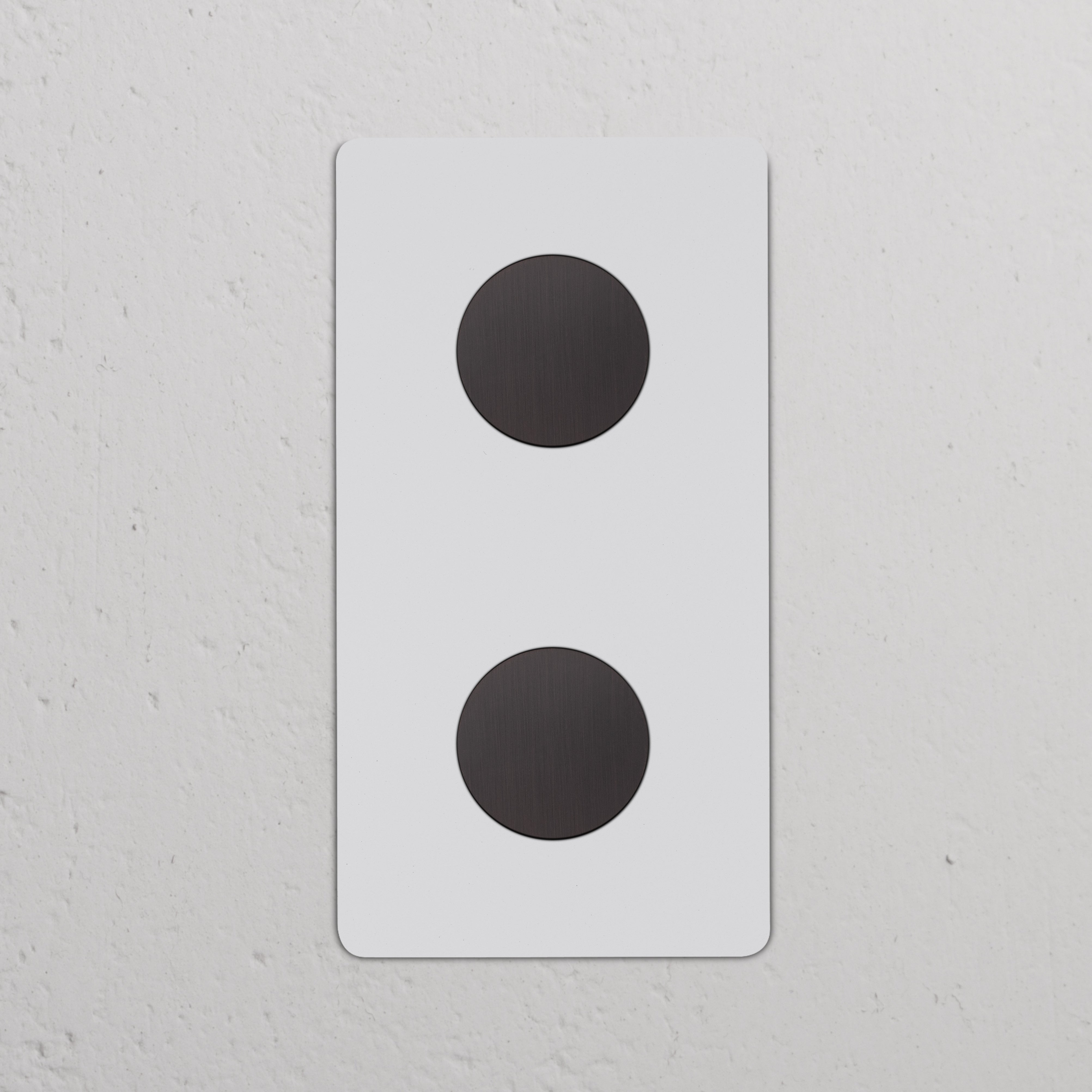 Schlank und schnörkellos: Das ist unser Dimmer 2x in vertikalem Zweifachrahmen.